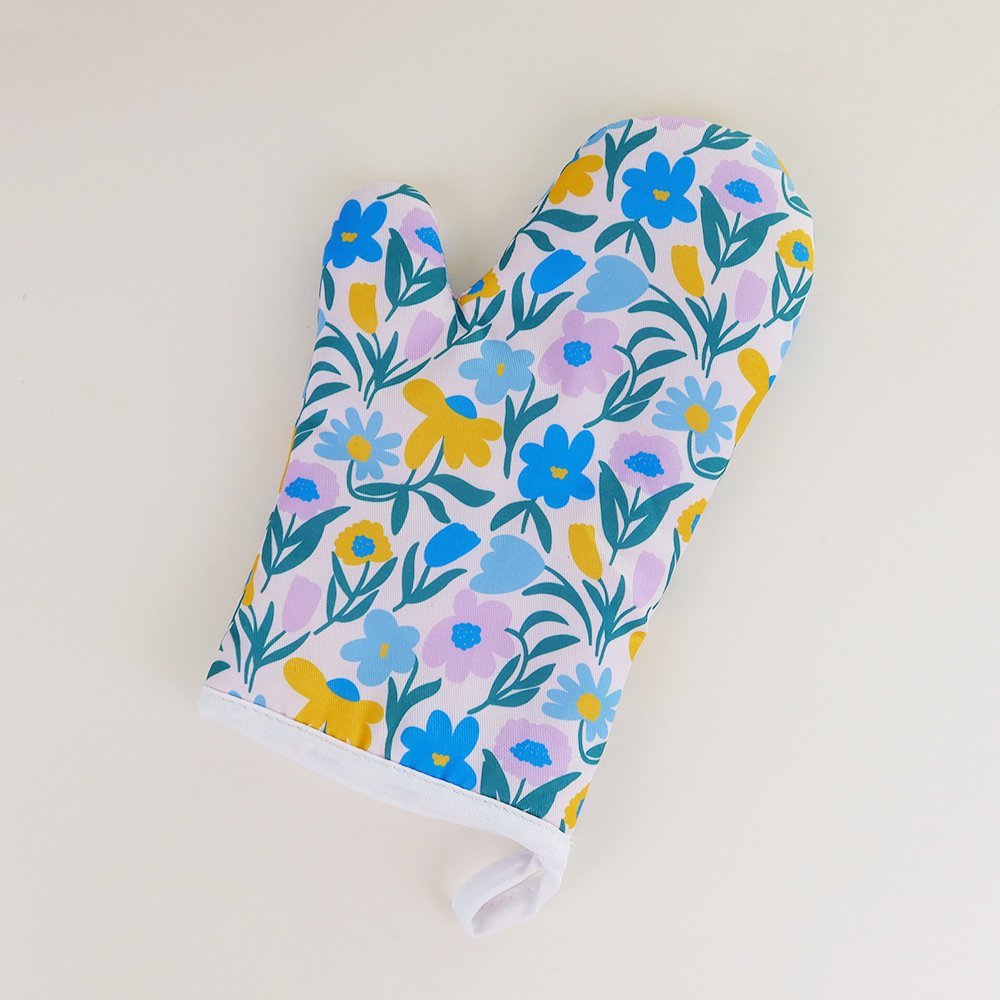 Silicone printed oven mitt & pot holder, cotton terry kitchen dish towel & dishcloth